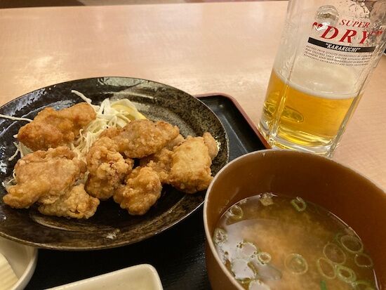 スパ&サウナ2回入ったあと午後11時頃にビールと日替わり定食を食う!今日は、からあげ定食だったので迷わずに選んだんですけど。。。まあ、スパの定食って感じでした。満足度は特になかったです。しかしインバウンドで海外勢が日本の観光地にいっぱい来ているようですがカプセル&スパは無風でした。外国人ゼロ!ホテルが値上がりしている中でカプセルホテル&スパが日本人の最後の聖域になるんじゃないかなって思いました。