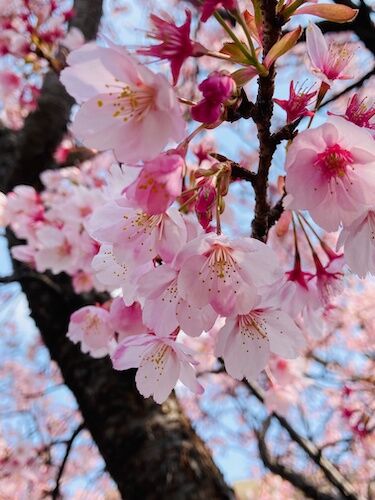 ひさしぶりに大阪城公園にいく。桜咲いてるかなーと思ってさ。まあ、咲いてませんでした。写真に写ってる桜の木2本だけ。他は全てつぼみでした。